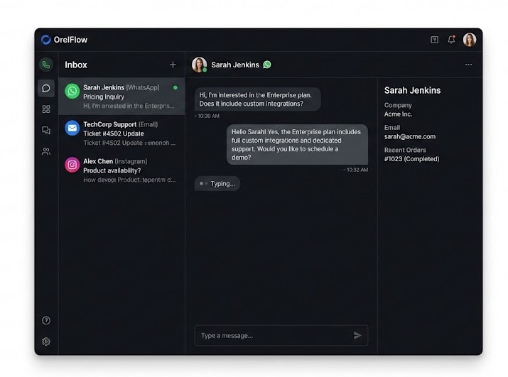 Don’t just reply—reply intelligently. The OrelFlow Inbox is integrated with our AI Agents (OpenAI & Gemini). When a complex query arrives, the AI can suggest responses, translate messages in real-time, or summarize long conversation histories, helping your agents work faster.