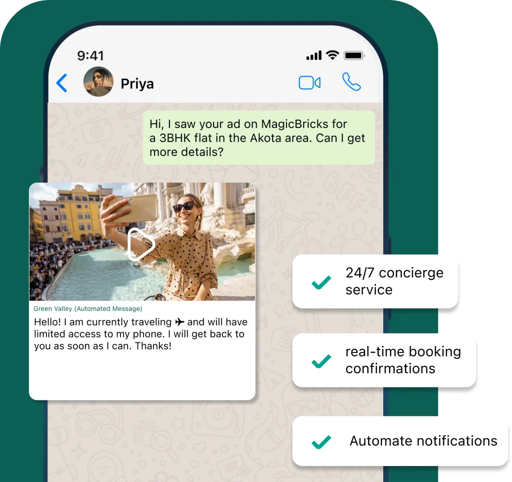 | Pre-Check-in & Registration | Send a personalized WhatsApp message 48 hours before arrival for pre-registration, collecting necessary documentation and offering early check-in options. |